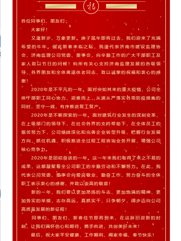 凝心聚力 逐梦前行——济南监理党委书记、董事长林峰春节致辞