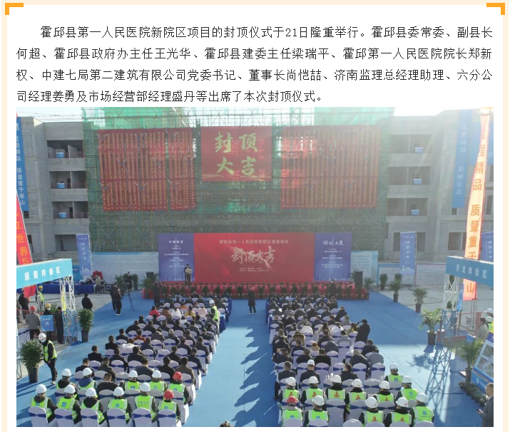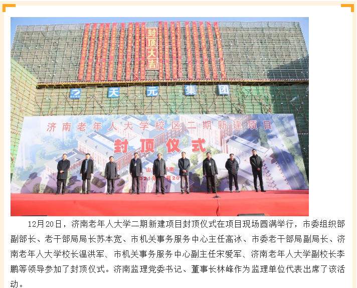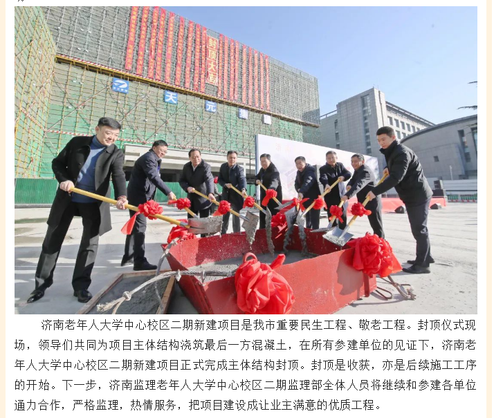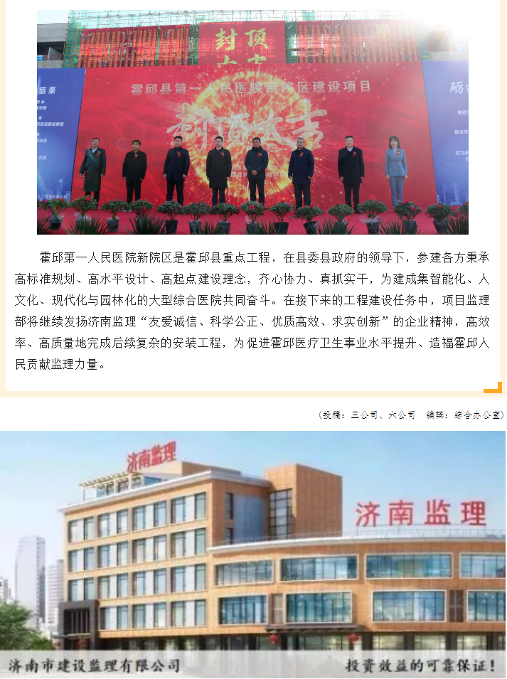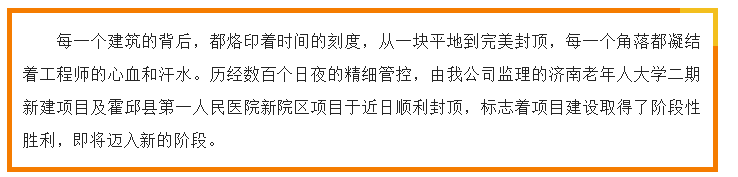 匠心倾注 喜封金顶——我公司监理的济南老年人大学二期新建项目及霍邱县第一人民医院新院区项目顺利封顶