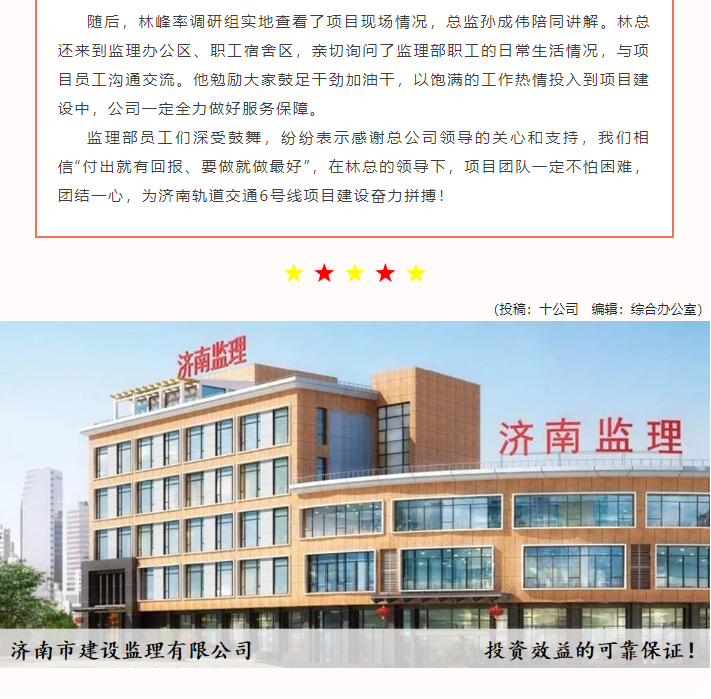 济南监理党委书记林峰带队到轨道交通6号线项目开展调研慰问