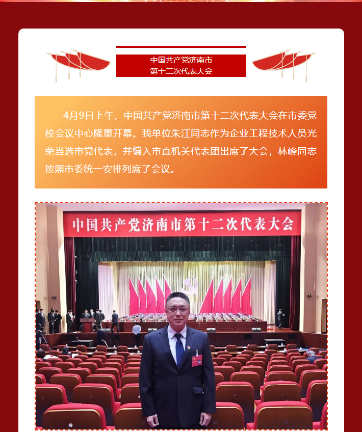 市党代表、济南监理总监朱江参加市党代会,党委书记、董事长林峰列席大会